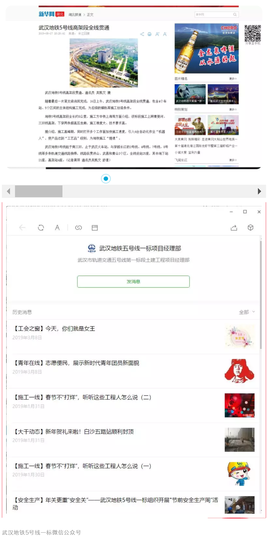 武漢地鐵5號(hào)線一標(biāo)項(xiàng)目黨支部成立了由項(xiàng)目書記為組長的宣傳工作領(lǐng)導(dǎo)小組,組織制定了項(xiàng)目宣傳工作年度計(jì)劃及獎(jiǎng)懲辦法。在《中鐵上海工程》報(bào)投稿工作方面,每月制定宣傳工作總結(jié)和下月工作計(jì)劃,截至目前已在《中鐵上海工程》報(bào)上刊稿6篇。在對外宣傳工作方面,在重大節(jié)點(diǎn)、人才培養(yǎng)、企業(yè)文化等方面深入挖掘,此外,黨支部還創(chuàng)辦了“武漢地鐵五號(hào)線一標(biāo)項(xiàng)目經(jīng)理部”微信公眾訂閱號(hào),每日上傳施工日報(bào),并結(jié)合施工生產(chǎn)、黨建工作及企業(yè)文化等方面情況,開辟了大干動(dòng)態(tài)、黨群園地、信息速遞等欄目,第一時(shí)間推送微信信息,將微信公眾號(hào)打造成了展示項(xiàng)目文化的“窗口”。