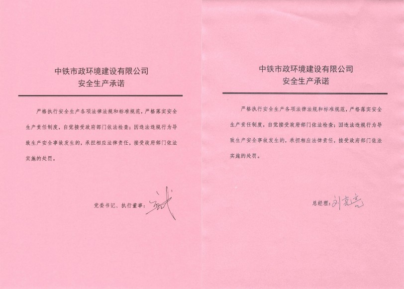 中鐵市政環境建設有限公司安全生產承諾